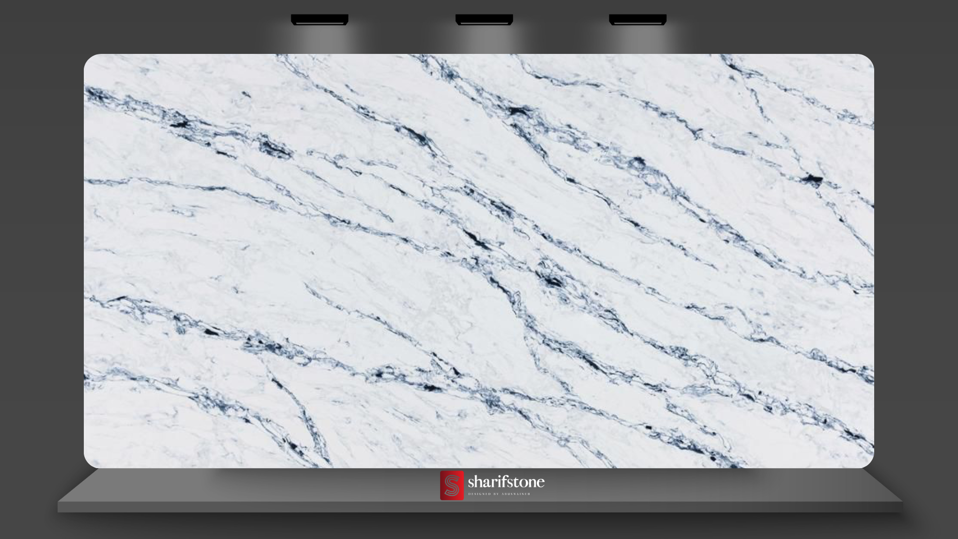 Monaco Tides features a bright white base dramatically contrasted with deep navy-blue veining. The bold, fluid patterns create strong visual movement, giving the slab a striking and modern marble-inspired aesthetic.