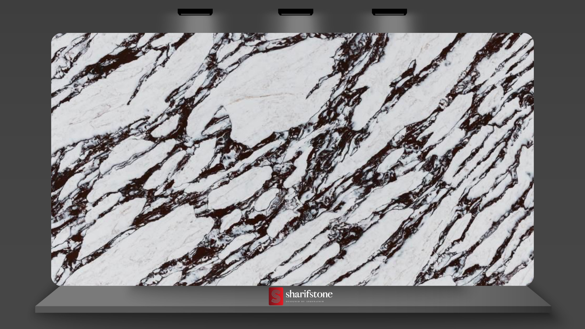 Sharif Viola showcases a dramatic white base intersected by bold, deep burgundy veining. The strong contrast and dynamic pattern create a striking, luxurious statement reminiscent of classic Italian marble.