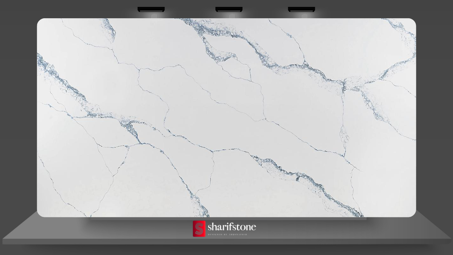 Blue Tide quartz showcases a serene white canvas accented by unique, wave-like veins in a deep oceanic blue. Its cool tones and fluid patterns evoke a sense of coastal elegance, making it a perfect centerpiece for distinctive kitchen designs