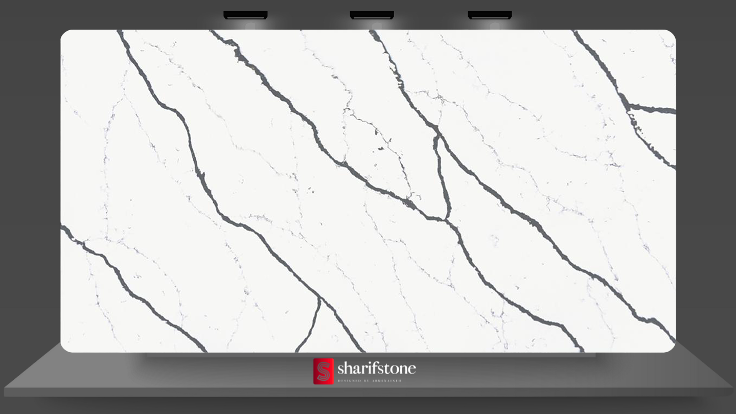 Featuring bold, dramatic charcoal veining set against a crisp alabaster background, White Badge quartz makes a powerful modern statement. Its striking contrast and intricate diagonal patterns bring a luxurious, high-end feel to any contemporary space.